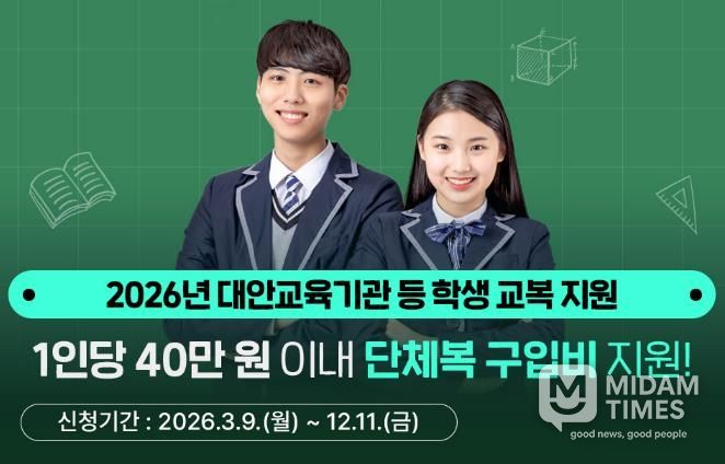 미담타임스 정주환 기자 | 경기도는 시군과 협력해 교복, 체육복 등 단체복 구입비 최대 40만 원을 지원한다. 지원 대상은 입·전학일 기준 경기도에 주민등록을 둔 도 내·외 대안교육기관 중·고등학교 1학년 입학생과 다른 시도에 소재한 중·고등학교 1학년 입학생이다.