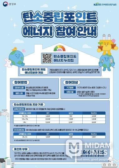 탄소중립포인트제(에너지 분야)는 가정 상가 등에서 전기, 도시가스, 상수도 사용량을 최근 2년 평균보다 5% 이상 절감하면 감축률에 따라 인센티브를 지급하는 전 국민 온실가스 감축제도이다.
