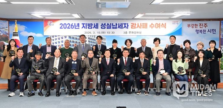 미담타임스 황명수 기자 | 진주시는 10일 시청 문화강좌실에서 지방세 납부에 대한 시민의식을 높이고 건전한 납세문화 조성을 위한 ‘2026 지방세 성실납세자 감사패 수여식’을 개최했다.