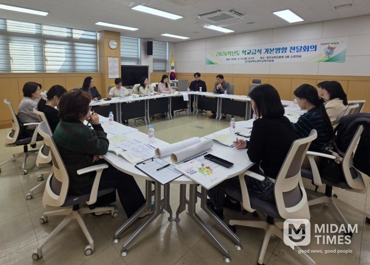 미담타임스 김준완 기자 | 경상북도영덕교육지원청은 학생들의 삶의 힘을 키우는 따뜻한 학교급식 제공을 위해 3월 10일 관내 초, 중, 고등학교 급식 관계자를 대상으로 2026 학교급식 기본방향 전달 및 경북 학교 공동식단 운영 사업인 ‘경북 저탄소 온밥상’ 전달 회의를 실시했다.