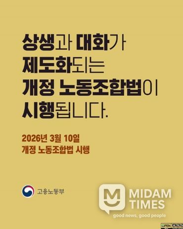 미담타임스 조혜리 기자 | 상생과 대화가 제도화되는 개정 노동조합법이 시행됩니다.