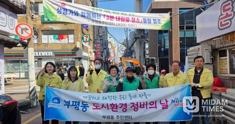 이날 환경정비 활동에는 부평동 새마을지도자·부녀회 회원들과 공무원 등 10여 명이 참여했으며, 유동 인구가 많은 광복로와 상점가 일대를 중심으로 쓰레기와 담배꽁초 등을 집중 수거하며 깨끗한 거리 환경 조성에 힘을 보탰다.