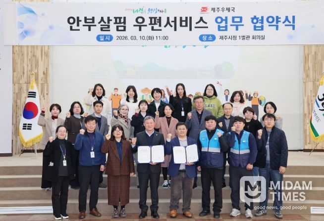 미담타임스 정인화 기자 | 제주시는 3월 10일 시청 1별관 회의실에서 제주우체국(국장 오달규)과 ‘안부살핌 우편서비스’ 업무 협약을 체결했다.