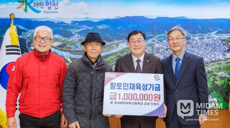미담타임스 황명수 기자 | 前 경남해양과학고등학교 교장 안병규는 10일 (재)합천군인재육성재단을 방문하여 향토인재육성기금 100만원을 기탁했다.