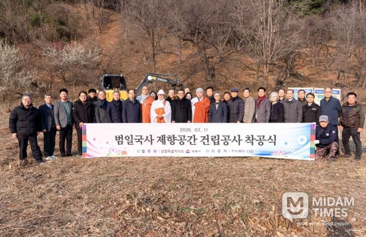 이날 착공 법회에는 김홍규 강릉시장을 비롯해 범일국사 선양회 회장을 맡고 있는 등명낙가사 주지 청우 스님과 범일국사선양회원 등 관계자 약 80명이 참석한 가운데 진행됐다.