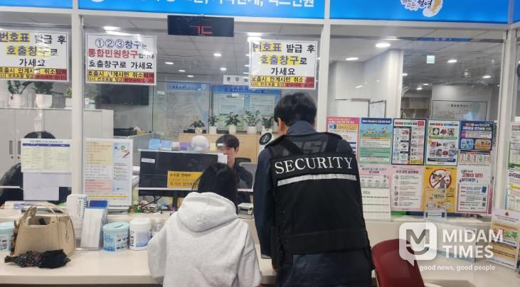 특히 안전요원은 단순 경비를 넘어, 거동이 불편한 어르신을 부축하거나 서류 작성을 돕는 등 ‘민원 도우미’ 역할까지 자처하고 있어 친절하고 안전한 민원실 분위기를 이끌어 내고 있다.