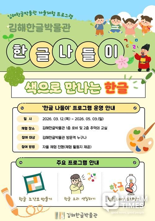 미담타임스 황명수 기자 | 김해한글박물관은 새 학기를 맞아 시민 자율 참여형 교육·체험 프로그램 ‘한글 나들이’를 운영한다고 12일 밝혔다.