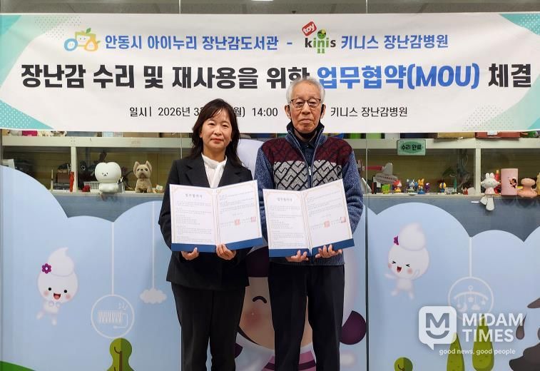 미담타임스 김준완 기자 | 안동시는 아이누리장난감도서관과 키니스 장난감병원이 장난감 수리와 재사용 문화 확산을 위한 업무협약(MOU)을 체결했다고 밝혔다.