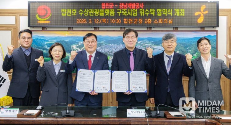 미담타임스 황명수 기자 | 합천군은 12일 군청에서 합천호 수상관광플랫폼 구축사업의 원활한 추진을 위해 경남개발공사와 위·수탁 협약을 체결했다.