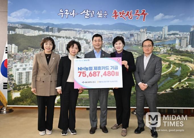 NH농협은행은 앞서 중구와 협약을 맺고 매년 법인카드와 보조금 카드, 공무원 복지카드 사용액의 1%를 적립해 중구에 발전 기금으로 전달하고 있다.