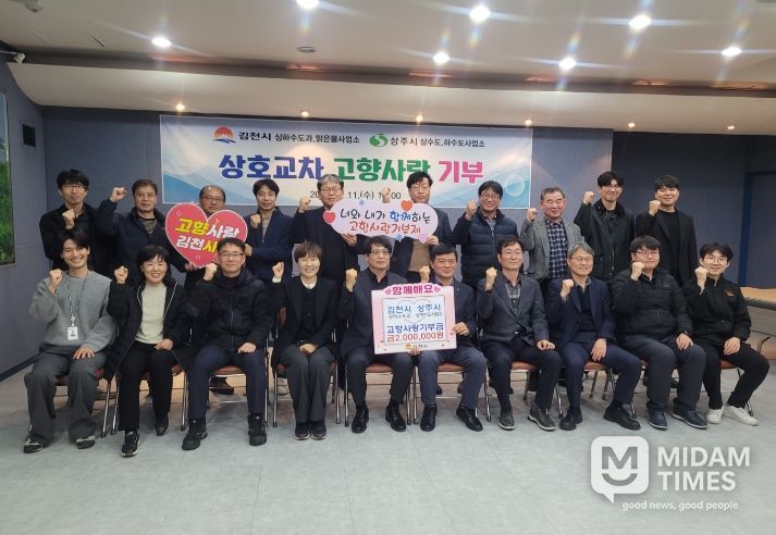 미담타임스 김준완 기자 | 김천시 상하수도과와 맑은물사업소는 3월 11일 오후 2시, 상주시 상․하수도사업소와 ‘고향사랑 상호기부’ 및 ‘상하수도 시설 운영 협력 방문’을 진행했다고 밝혔다.