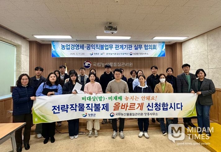 미담타임스 김준완 기자 | 국립농산물품질관리원 장흥사무소는 전남 장흥군 및 한국농어촌공사 장흥지사와 농업인의 공익직불금 올바른 신청을 위한 협의회를 지난 3월 11일 개최했다.