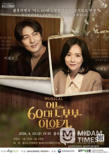 미담타임스 남혜영 기자 | 사하구 을숙도문화회관은 오는 4월 10일 오후 7시 30분 대공연장에서 뮤지컬 '어느 60대 노부부 이야기'를 선보인다.