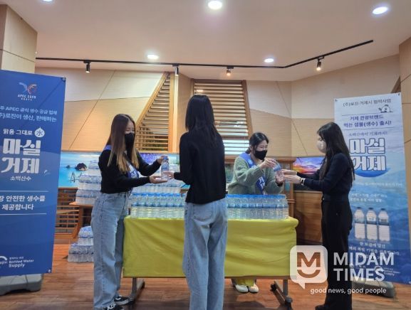 미담타임스 황명수 기자 | 거제시는 지난 12일 시청 로비에서 국내 지방자치단체 역사상 최초로 중소기업과 손잡고 추진한 관광 브랜드 홍보용 먹는샘물 ‘마실거제’의 출시 기념 시음 행사를 성황리에 개최했다고 밝혔다.