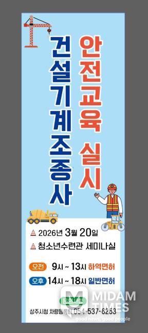 미담타임스 김준완 기자 | 상주시는 오는 20일 청소년수련관 세미나실에서 2026년 건설기계조종사 안전교육을 실시한다.
