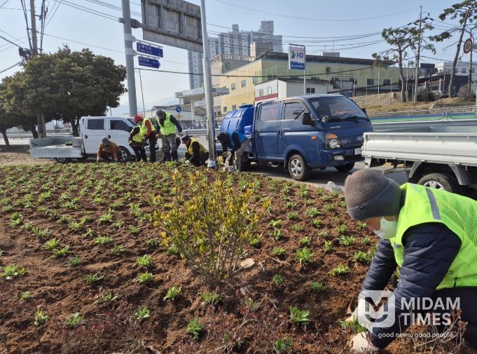 미담타임스 황명수 기자 | 남해읍 행정복지센터는 남해읍 지역의 경관을 개선하고, 주민들에게 계절의 변화를 가까이에서 느낄 수 있는 쾌적한 환경을 제공하기 위해 10일부터 남해교차로 등 읍내 주요 10개 지점에 크리산세멈과 리빙스턴데이지 등 봄꽃 2종 9,000본을 식재했다.