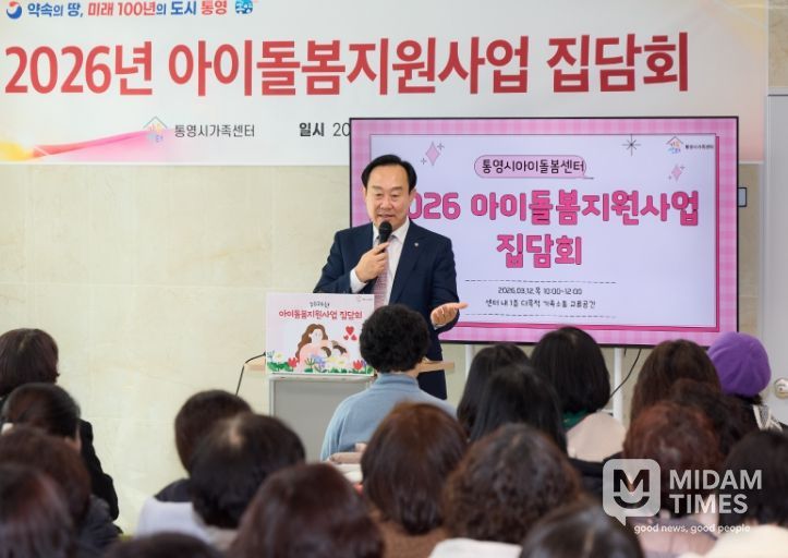 미담타임스 황명수 기자 | 통영시는 지난 12일 통영시가족센터에서 아이돌보미 129명 대상으로 ▲2026년 아이돌봄지원사업 운영 방향 공유 ▲직무이해도 및 현장 대응 역량 강화 교육 ▲돌봄 현장 애로사항 및 의견 청취 등 소통을 위한 아이돌보미 집담회를 개최했다.