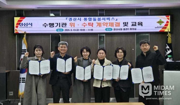 미담타임스 김준완 기자 | 경산시는 13일 지역 내 돌봄이 필요한 어르신들이 살던 곳에서 안정적으로 생활할 수 있도록 지원하기 위해 통합 돌봄 서비스 수행기관(5개 분야 6개소)과 위·수탁 계약을 체결하고 사업 운영 교육을 실시했다고 밝혔다.