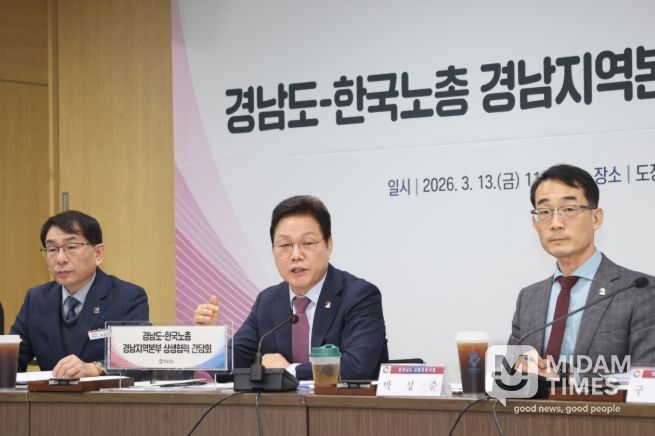 미담타임스 황명수 기자 | 경상남도는 한국노총 경남지역본부 관계자들과 만나 지역 노동 현안에 대한 의견을 나누고, 상생협력 방안 모색과 건전한 노사문화 조성을 위한 협력을 다짐했다.