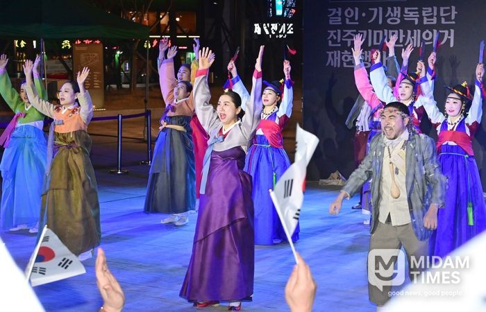미담타임스 황명수 기자 | 3.1운동 107주년을 기념해 지난 13일 오후 6시 30분 진주대첩 역사공원 호국마루에서 ‘진주걸인·기생독립단 만세운동’ 재현 행사가 열렸다.