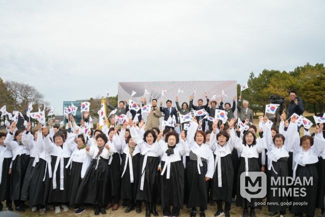 공연에 이어 오영훈 지사를 선두로 유공자 후손과 해녀 대표가 무대에 함께 올라 “대한독립 만세”를 외쳤고, 광장을 가득 메운 500여 명이 한목소리로 화답했다.