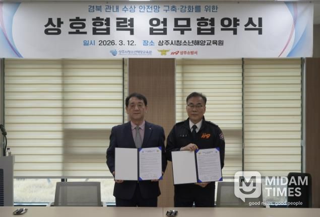 미담타임스 김준완 기자 | 상주시청소년해양교육원은 3월 12일 상주소방서와 지역사회 안전망 구축 및 안전 역량 제고를 위한 업무협약(MOU)을 체결했다.