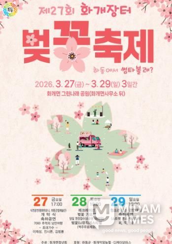 군 관계자는 “지난해 산불로 인해 벚꽃축제를 개최하지 못해 군민과 관광객 모두에게 큰 아쉬움이 있었다”라며, “올해는 더욱 철저한 준비와 풍성한 프로그램으로 하동의 봄을 기다려온 많은 분에게 잊지 못할 벚꽃 추억을 선사하겠다”라고 말했다.