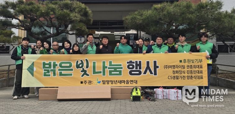 미담타임스 황명수 기자 | 밀양청년새마을연대(회장 남승일)는 지난 15일 가곡동 경로당 4곳을 대상으로 기존 형광등을 에너지 효율이 높은 발광다이오드(LED) 전등으로 교체하는 ‘밝은 빛 나눔 사업’을 실시했다.