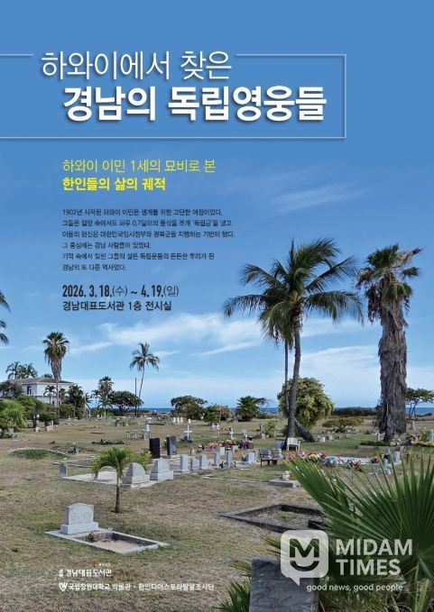 미담타임스 황명수 기자 | 경남대표도서관과 국립창원대학교는 3월 18일부터 경남대표도서관 전시실에서 ‘하와이에서 찾은 경남의 독립영웅들’ 특별전을 공동 개최한다고 밝혔다.