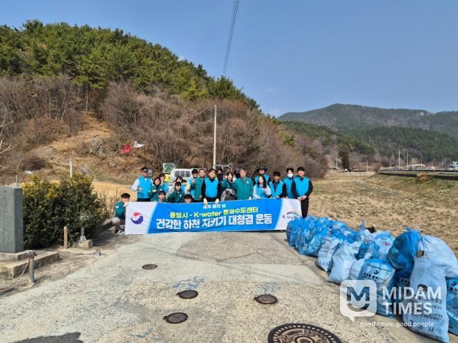 미담타임스 김준완 기자 | 통영시는 통영수도센터(한국수자원공사 경남서부권지사)와 함께 ‘2026년 세계 물의 날(3. 22.)’을 맞아 수(水) 자원의 중요성과 미FDA인정 청정해역 보존에 대한 인식 및 공감대 확산을 위해 3월 16일 광도면 광도천 일원에서 하천정화활동을 펼쳤다.