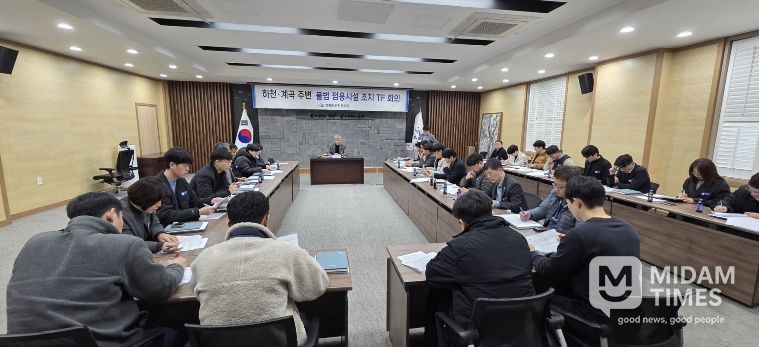 군은 지난 13일 군청 2층 소회의실에서 TF단장인 부군수 주재로 하천·계곡 주변 불법 점용시설 정비를 위해 관련 부서 및 읍·면 팀장과 담당자 등이 참석해 전수조사 추진 방안과 정비 계획을 공유했다. 이번 조치는 최근 국무회의에서 제시된 대통령 지시사항에 따른 후속 대응으로 마련됐다.