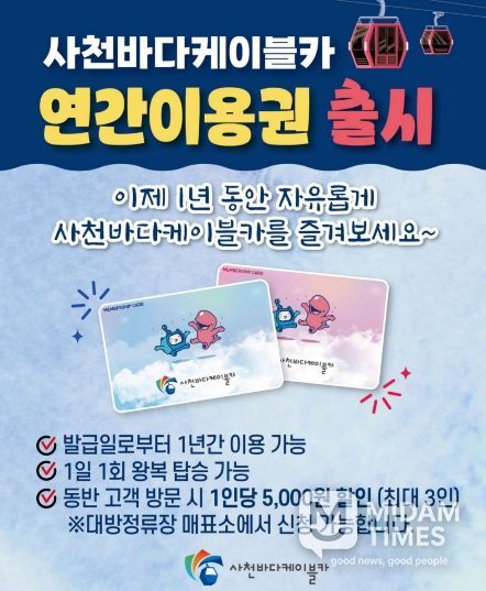 이번 연간 이용권은 사천을 찾는 외지 관광객들에게 문턱을 낮추고, 남해안의 대표 랜드마크인 사천바다케이블카를 상시 즐길 수 있는 기회를 제공해 지역 경제 활성화를 도모하기 위해 마련됐다.