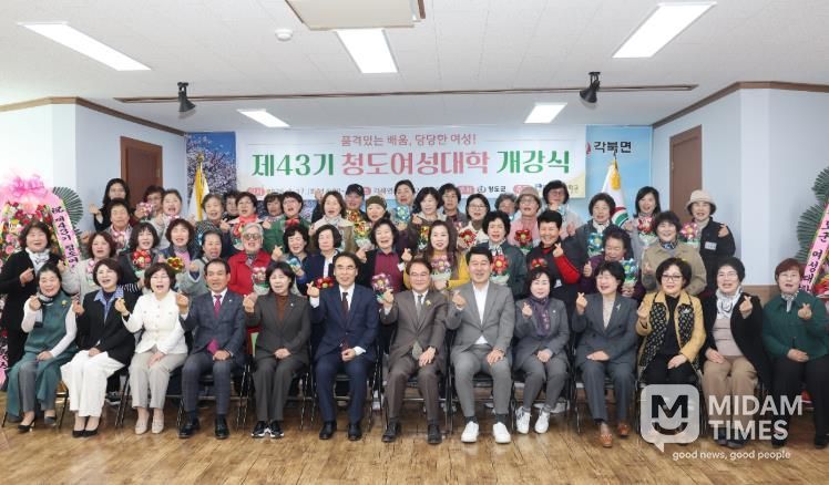 미담타임스 김준완 기자 | 청도군은 17일 오후 2시 각북면사무소 회의실에서 수강생과 지역단체장, 여성단체장 등 60여 명이 참석한 가운데 제43기 청도여성대학 개강식을 개최했다.