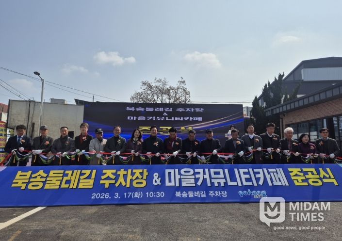 미담타임스 김준완 기자 | 포항시는 17일 흥해읍 옥성리에서 지역 주민과 관계자 등 150여 명이 참석한 가운데 ‘북송둘레길 주차장 및 마을커뮤니티카페 준공식’을 개최했다.