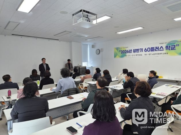 미담타임스 김준완 기자 | 동구 노동자지원센터는 3월 17일 오후 2시 센터 2층 교육실에서 ‘2026년 상반기 60 플러스 학교’ 입학식을 개최하고 10주간의 학기를 시작했다.