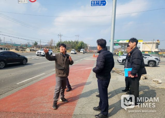 이날 점검한 민원 현장은 ▲온양읍 미라주아파트 앞 삼거리(좌회전 신호 신설 요청), ▲온양읍 원동길 동천1교 인근(좌회전 신호등 위치 이동조치 요청), ▲온양읍 한양립스아파트 앞 삼거리(차로 확장 요청) 등 세 곳으로, 모두 지역 주민들이 지속적으로 불편을 호소해 온 교통 취약 지점이다.