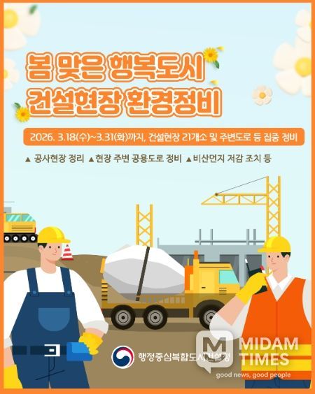 미담타임스 김준완 기자 | 행정중심복합도시건설청은 3월 18일부터 31일까지 행복청 발주·인허가 건설현장 21개소를 대상으로 봄맞이 환경정비를 실시한다.