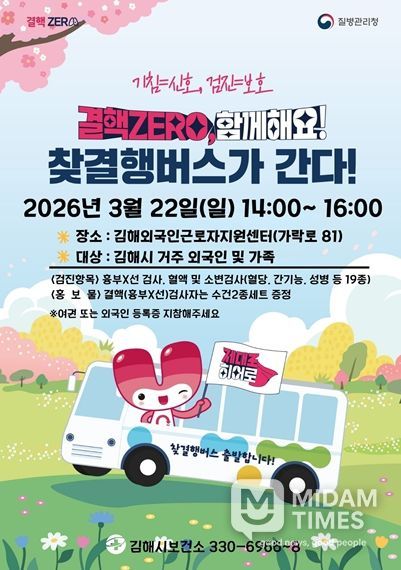 미담타임스 황명수 기자 | 김해시는 제16회 결핵예방의 날(3월 24일)을 맞아 오는 22일 오후 2시부터 4시까지 김해외국인근로자지원센터에서 '찾아가는 외국인 무료 결핵검진'을 실시한다고 18일 밝혔다.