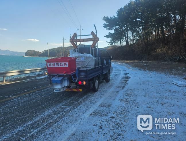 남해군은 이 기간 동안 기상예보에 따라 비상근무체계를 가동하고, 도로팀 17명(공무원 5명, 도로보수원 12명)을 투입해 결빙 예방 및 제설 작업을 실시했다.