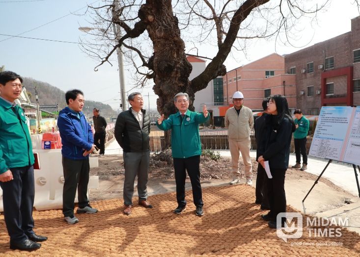 오태완 군수는 사업 추진 경과와 공정 진행 상황을 보고받고, 시공 상태와 안전관리 실태 등을 꼼꼼히 점검했다.