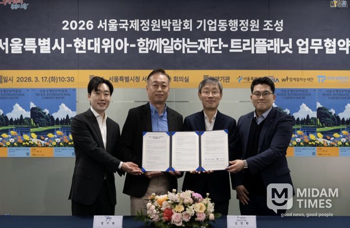 미담타임스 김준완 기자 | 서울시는 현대위아, 함께일하는재단, 트리플래닛과 5월 1일 개막하는 ‘2026 서울국제정원박람회’의 기업동행정원 업무협약(MOU)을 3월 17일 서울시청에서 체결했다.