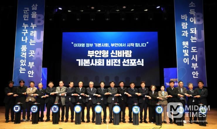 실제 군은 18일 부안예술회관 공연장에서 부안형 신바람 기본사회 비전 선포식을 개최하고 국가 정책 기조를 지역 특성에 맞춰 구체화한 기본사회 선도도시로의 도약을 선포했다.