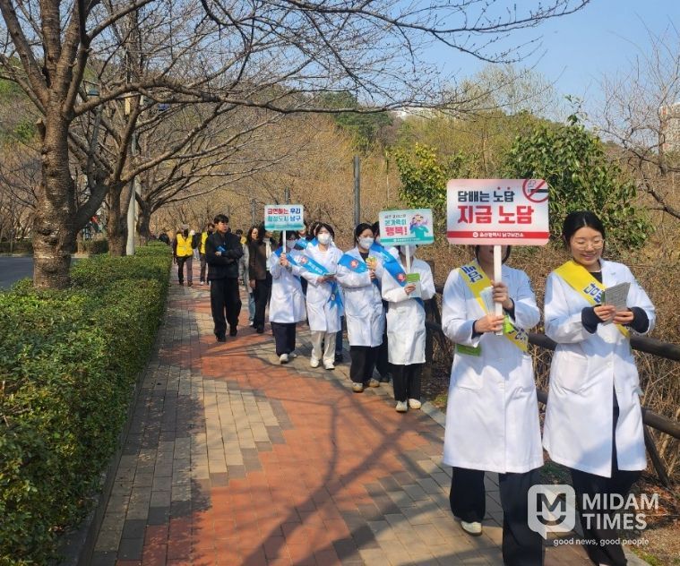 이날 보건소 직원과 금연지도원, 울산대학교·춘해보건대학교 간호학과 학생들은 공원을 이용하는 주민들을 대상으로 금연의 필요성을 알리고 금연클리닉 운영 안내, 간접흡연 예방 홍보 등을 진행하며 자발적인 금연 실천을 독려했다.