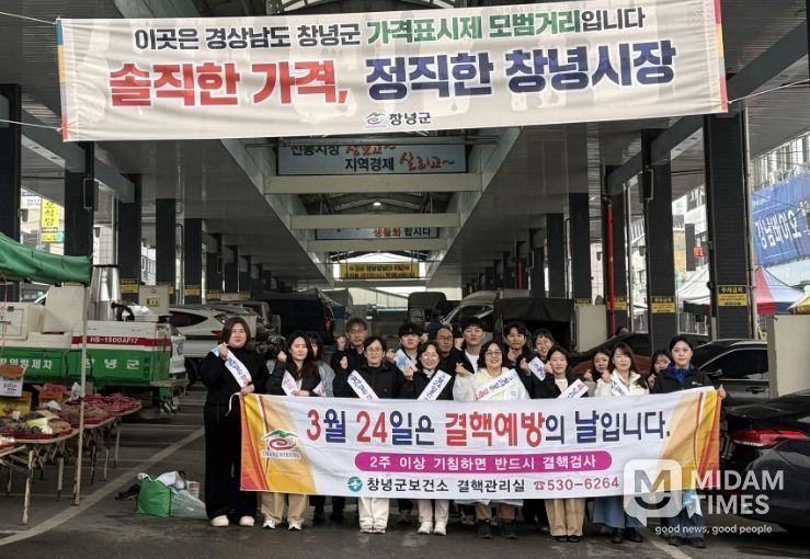 미담타임스 황명수 기자 | 창녕군은 제16회 결핵예방의 날(3월 24일)을 앞두고 “함께해요, 결핵 ZERO! 기침=신호, 검진=보호, 치료=야호”를 주제로 결핵에 대한 경각심을 높이고 인식 개선과 조기 검진, 예방의 중요성을 알리기 위해 18일 창녕시장 일원에서 지역주민을 대상으로 결핵 예방 홍보 캠페인을 실시했다.