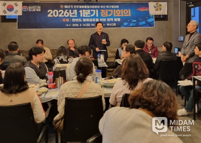 미담타임스 남혜영 기자 | 민주평화통일자문회의 부산 북구협의회는 지난 14일 오후 6시 30분, 경남 통영에서 자문위원 31명이 참석한 가운데 ‘한반도 평화공존을 위한 대내외 정책 추진방향’을 주제로 ‘2026년 1분기 정기회의’를 개최했다.