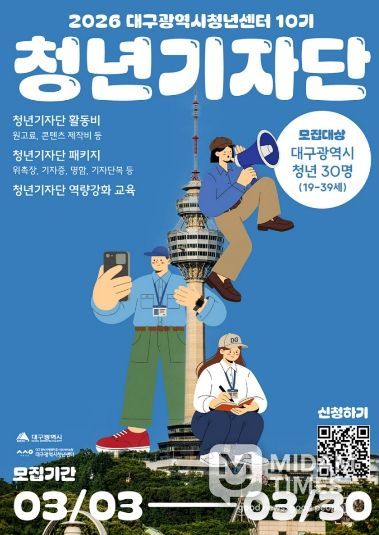 미담타임스 전해찬 기자 | 대구광역시는 지역 청년정책과 청년 활동의 현장을 청년의 시각에서 취재하고 전달할 ‘제10기 청년기자단’을 오는 3월 30일까지 모집한다.