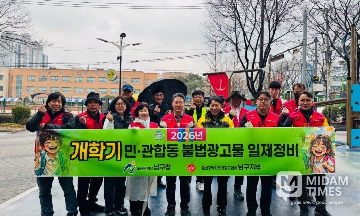 미담타임스 김준완 기자 | 울산 남구는 관내 유치원, 학교 주변 도로 등 보행과 차량 통행에 지장을 주는 불법광고물을 제거하여 깨끗하고 안전한 교육환경을 조성하기 위하여 18일 민관 합동 불법광고물 일제정비 캠페인을 실시했다고 밝혔다.