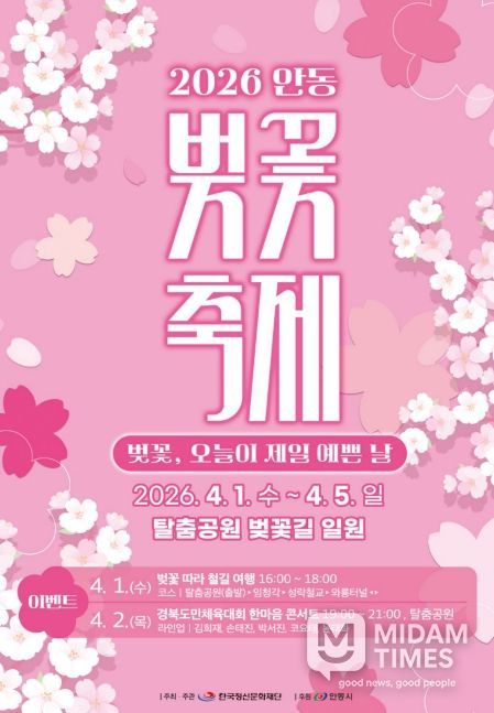 안동시 관계자는 “안동은 발길이 닿는 곳마다 역사와 문화가 숨 쉬는 독보적인 매력을 가진 도시”라며, “따뜻한 봄날, 가장 한국적인 도시 안동에서 일상의 쉼표를 찍고 봄꽃 여행의 정수를 느껴보시길 바란다”고 전했다.