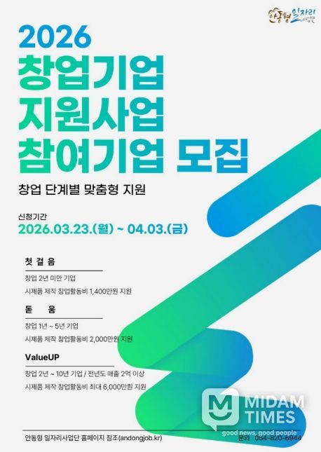 미담타임스 김준완 기자 | 안동시는 국립경국대학교 안동형일자리사업단과 함께 ‘2026년 창업기업 지원사업’ 참여기업을 모집한다.