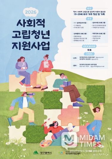 미담타임스 전해찬 기자 | 대구광역시는 심리적·정서적 어려움으로 사회와 단절된 고립 청년들이 건강한 일상을 되찾고 성공적으로 사회에 복귀할 수 있도록 ‘2026년 사회적 고립청년 지원사업’을 본격 추진한다.